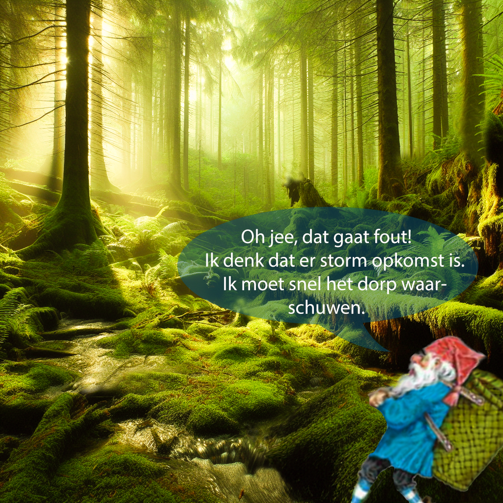 ‘Oh jee, dat gaat fout! Ik denk dat er storm opkomst is. Ik moet snel de andere waarschuwen.